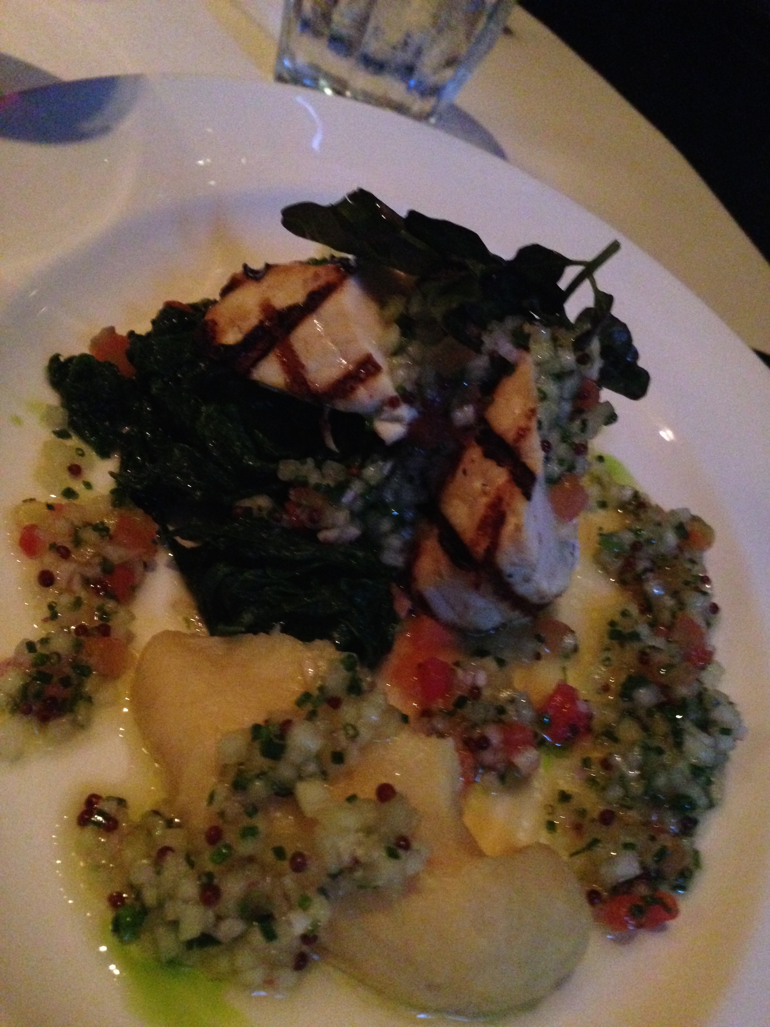 i ventured the pseudo-“gefilte fish” thinking it’d be really unique – and here’s an example where I think that knowing what the original dish was would have made me appreciate this one better. but for me, it didn’t offer me much more than carrot-on-carrot-on-nondescript-fish. sorry guys. I mean sure, it tasted fine, but it’s not going to win any records for making me contemplating the true meaning of food (i.e. what I typically like to contemplate when eating dinner out).