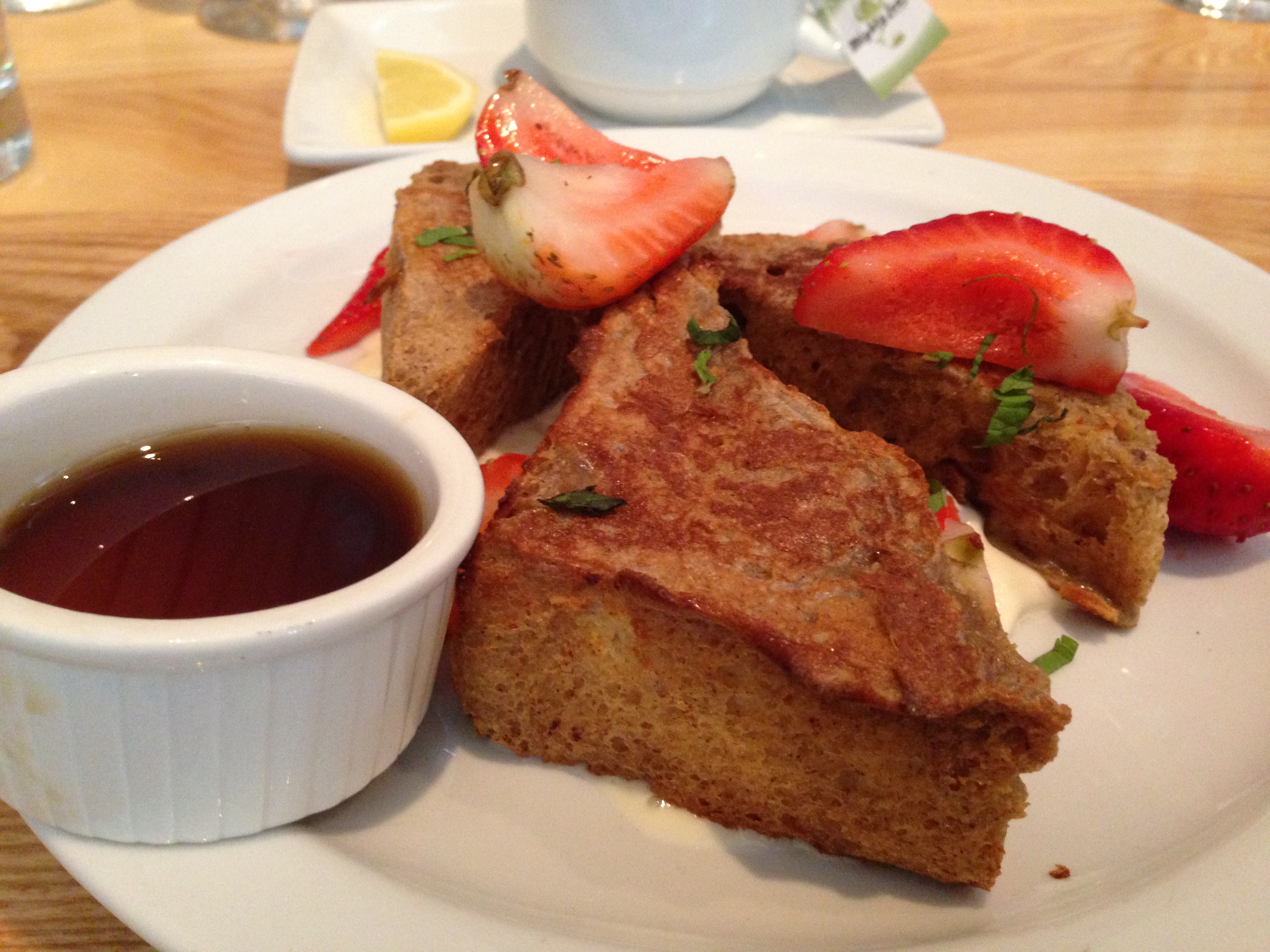 g, v, a, and I also went back to Tria Fitler Square (damn, we must spend a lot of time with a and v – doesn’t it seem like we go everywhere with those guys?). It’s personally our new favorite brunch, as I love love love their pancakes. This time, however, I ventured their French toast with strawberries over marscapone, and while the French toast, itself, was killer, I have to say that the unripe strawberries and rather boring marscapnoe really biffed it for me. Oh well – better stick with the pancakes if what you desire is carb-on-carb action.