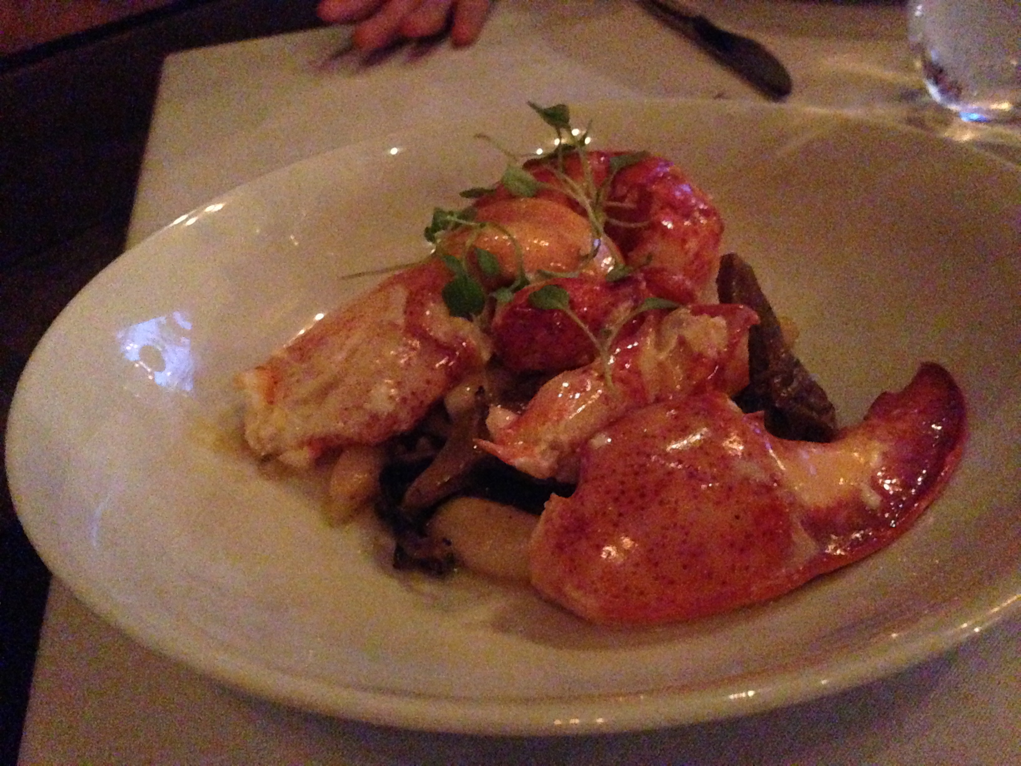 Well, the meal started off with a bang, as a was really impressed by the foie soup. In his words: “It’s always great when chefs make something heavy, light.” He was less impressed with his lamb tartare (“good, but nothing out of the ordinary”) Then, the above dish hit the table and we were floored! The waiter promised, “the gnocchi dish is more like a lobster dish with a garnish of gnocchi” – and he was right! It was quite scrumptious – although to be honest, I would have loved to have seen more gnocchi (they were ALSO great! it’s a shame there were so few!) But how dare I complain about “too much lobster” …