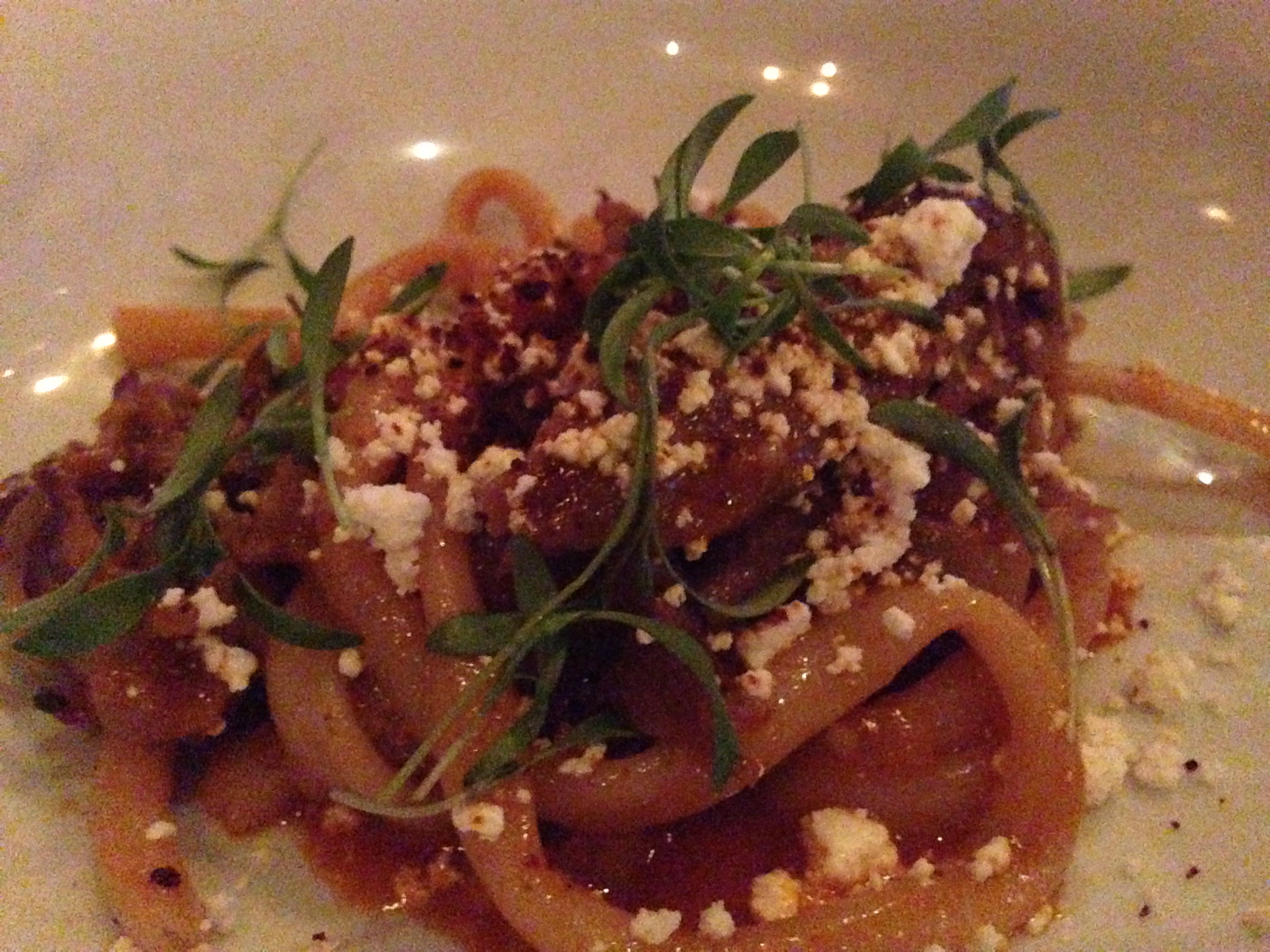 Ah, yes – the good ‘ol blurry photo. Why bother including it? Because it’s a reminder to one and all that Mercato is still frickin’ killing it, Italian-BYO-style. Remember when Philly was reknowned for its Italian BYOs? When Mercato, Melograno, Modo Mio, and La Viola were all the rage? Before we cared about celebrities and expensive tasting menus. Well, we won’t forget those good ‘ol days (obviously we are old and crotchety and resistant to change). The above is a dish from Mercato during the “Summer Tuesday Tastings” they got going on. Pasta, braised meat, pistachio, and some shreds of cheese? Yes please. God it was good.