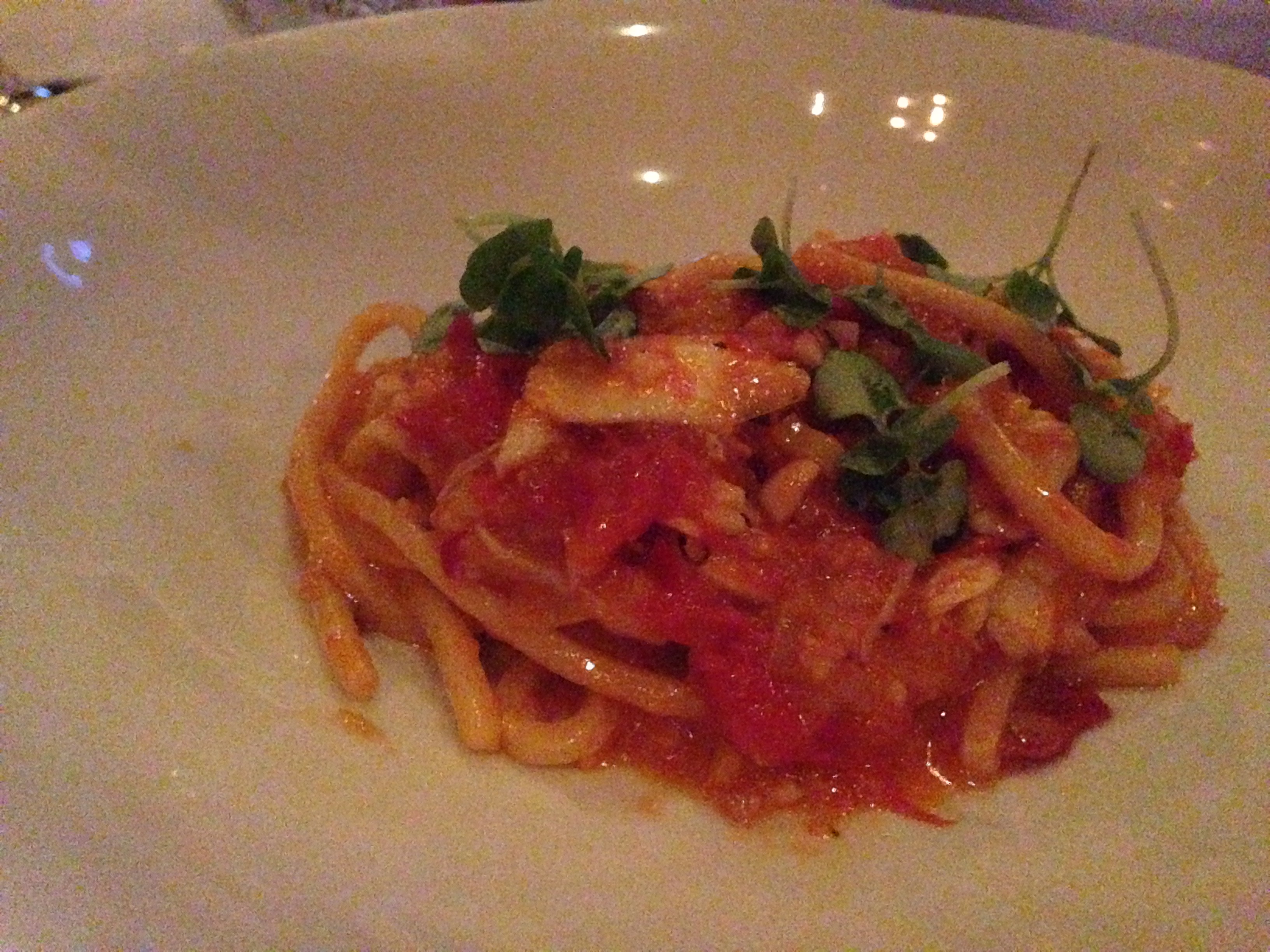Meanwhile, g and v ventured a ?crab? pasta that they swore one-upped mine. I mean, they’re wrong, but that’s ok – just so long as they think they won, right? (More osso bucatini for me …)