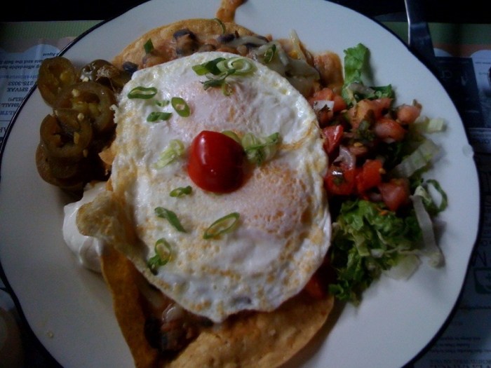 g went for huevos. Surprise. By now she has built up quite a huevos repertoire, having had it at all the major brunch spots that offer it. She has a hard time choosing a favorite, but what she does know is that this one just didn’t have the avocado, enough beans, or enough runny yolk to seal the deal. Plus, if I remember correctly, the tomatoes weren’t really cooked down much – it was more like a salsa. Bummer. Well, at least nothing was bad – she did a number on the dish. (Personally, I think her favorite is the one that cm and k make … just sayin’ …)