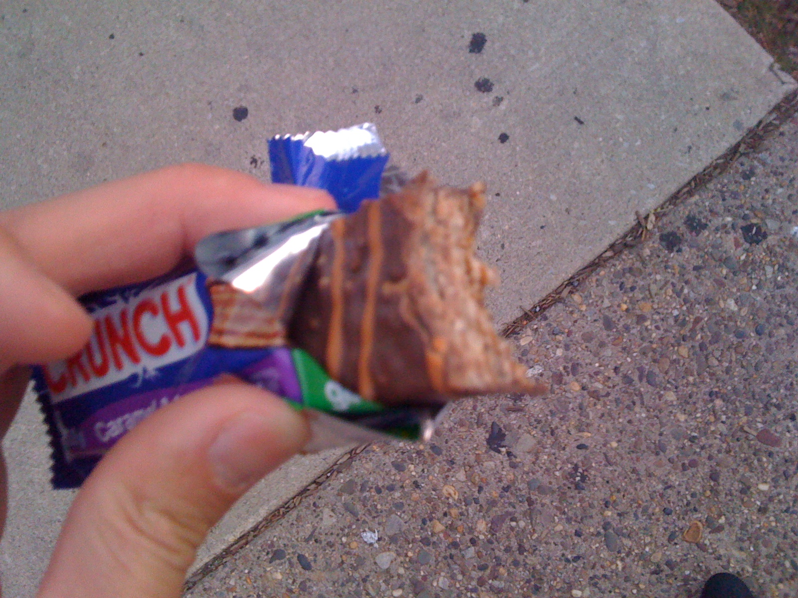 So … it’s hard to see in the photo, but this actually doesn’t resemble a Crunch bar at all. It’s more like a series of sandwiched wafers (like Little Debbie Nutty Bars) – so there’s no puffed rice! But the interesting thing … is that it does taste remarkably similar to Samoa cookies! The coconut and that chocolate are exactly like the cookie. That’s pretty darned impressive! Plus, unlike the cookie, I don’t choke on errant coconut flakes. Bonus! I don’t know if these are a replacement for the real-deal-cookies, however, these are individually wrapped, meaning that I won’t “accidentally” eat them all (i.e. I’ll have to make a conscious effort to unwrap each bar before consumption) and they’re immediately transportable … which is awfully convenient.