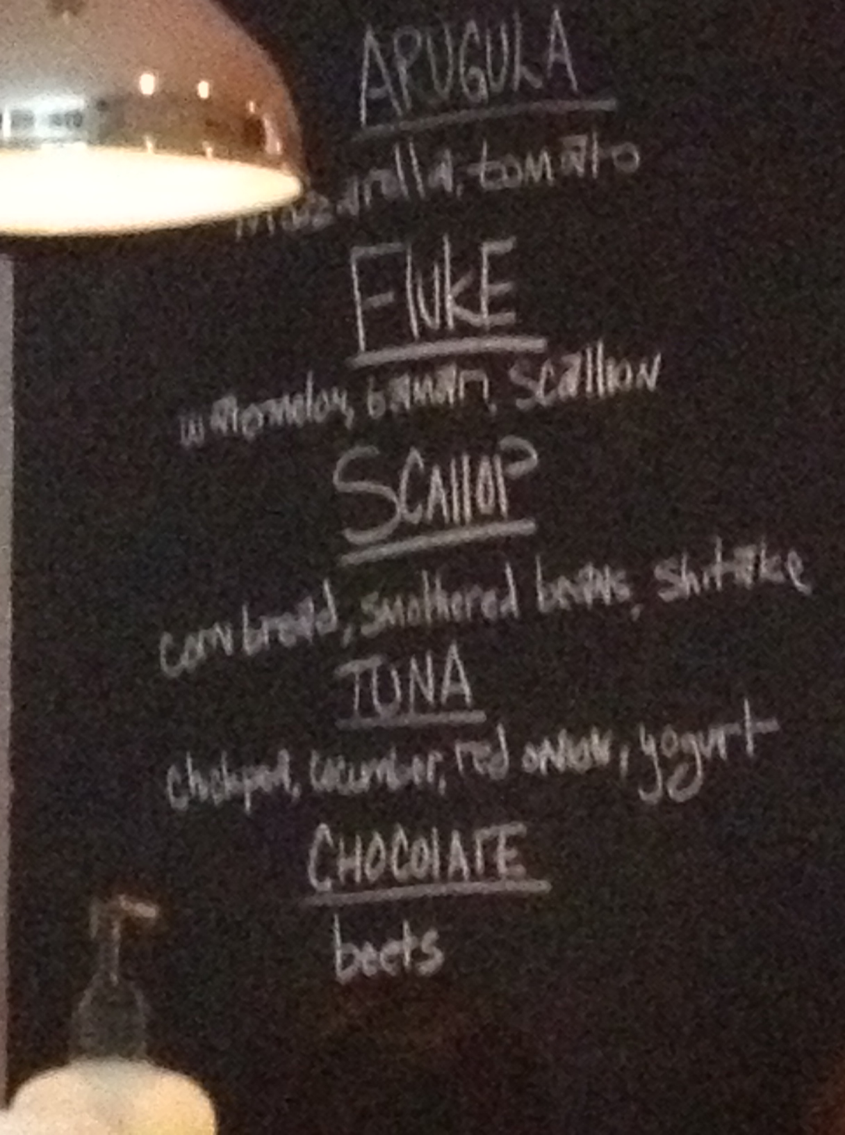 t says: g and I celebrated her bday with a trip to Little Fish. Why Little Fish? Well, we were looking for a place that was new to us and BYO. Technically, we had gone to Little Fish once before, BUT, we hadn’t gone since it closed and re-opened in its new digs – so it was kind of like a new restaurant!!! We also had a bottle of Illumination from Quintessa that we acquired during our visit to Napa – and what better way to make it the star of the evening than to have a bunch of fish!? Finally, when we saw the pricepoint of the menu, we knew that Little Fish is a little expensive to make it just a random-weekend-dinner – at nearly $30 per entree, there needs to be a little something special worth eating for.