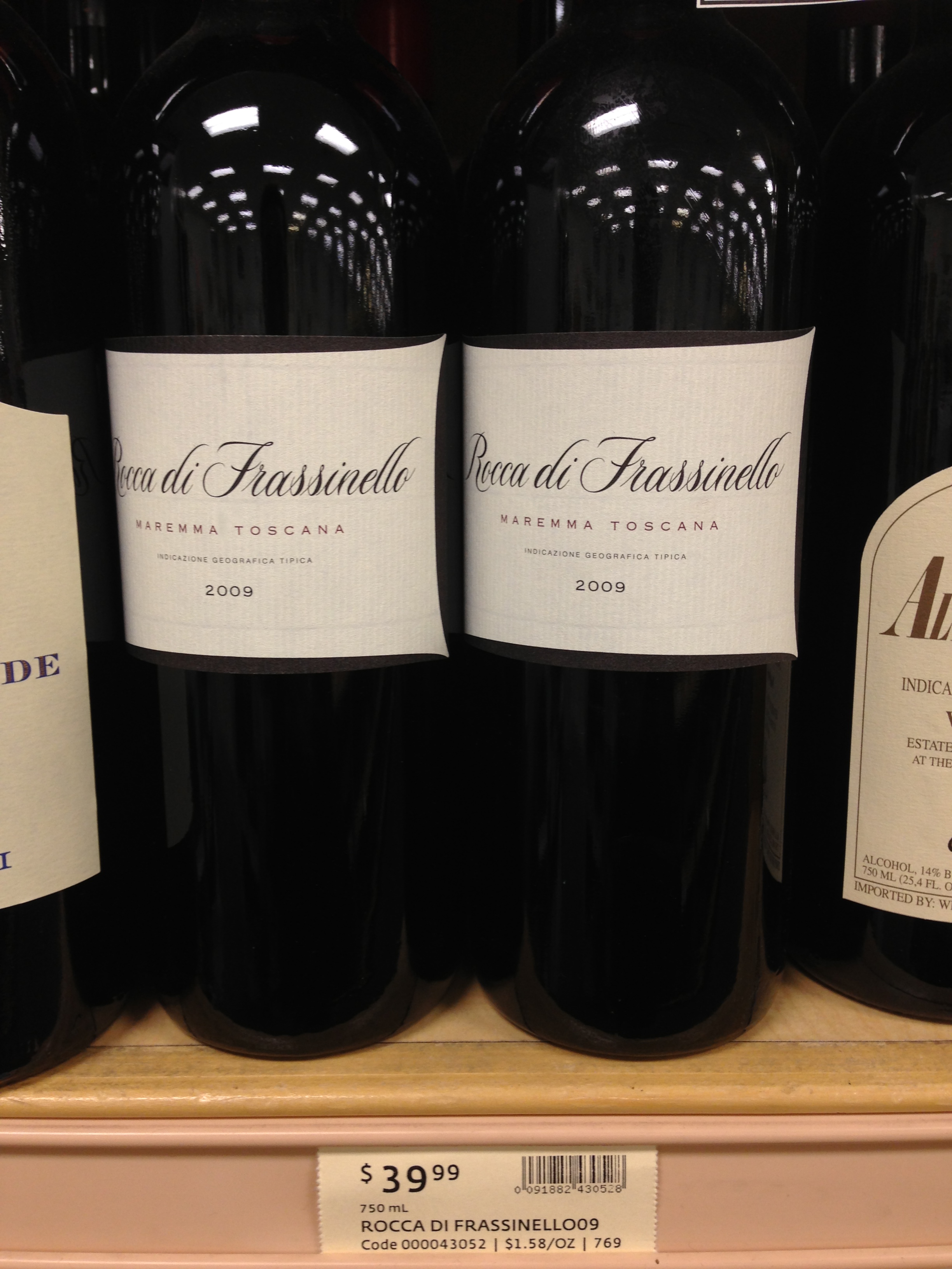 Tucked away behind all those distracting chianti was this bottle. You see, the 2009 Sughere di Frassinello was a phenomenal wine at ~$17. Well … this is that wine’s older, more sophisticated brother who went to Ivy League school, is a tennis phenom, and drives a Porsche. What does it taste like? I have no idea. But this is the first time I’ve ever seen it on a shelf, so I’m VERY intrigued. Am I $40 intrigued. Oh-so-very-close …