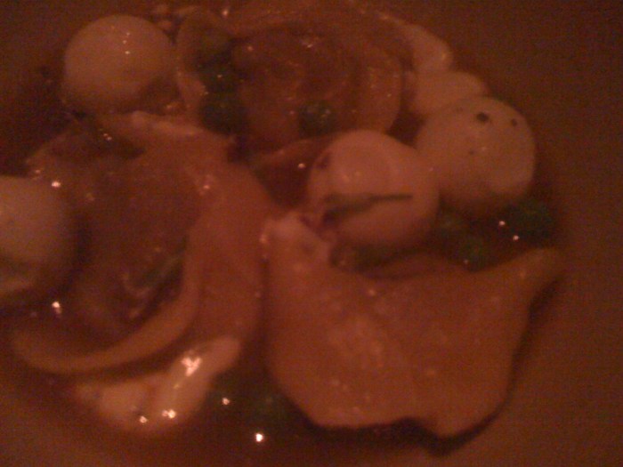 pea ravioli with pork belly surprise (hiding underneath!): this was my favorite of the night – and for the record, it was not just because there was a hiding mass of pork underneath (many attested to the greatness of the ravioli sans pork). I can’t even begin to describe what made this dish so remarkable other than to admit that “pea ravioli” as I’ve called it does it a tremendous disservice.