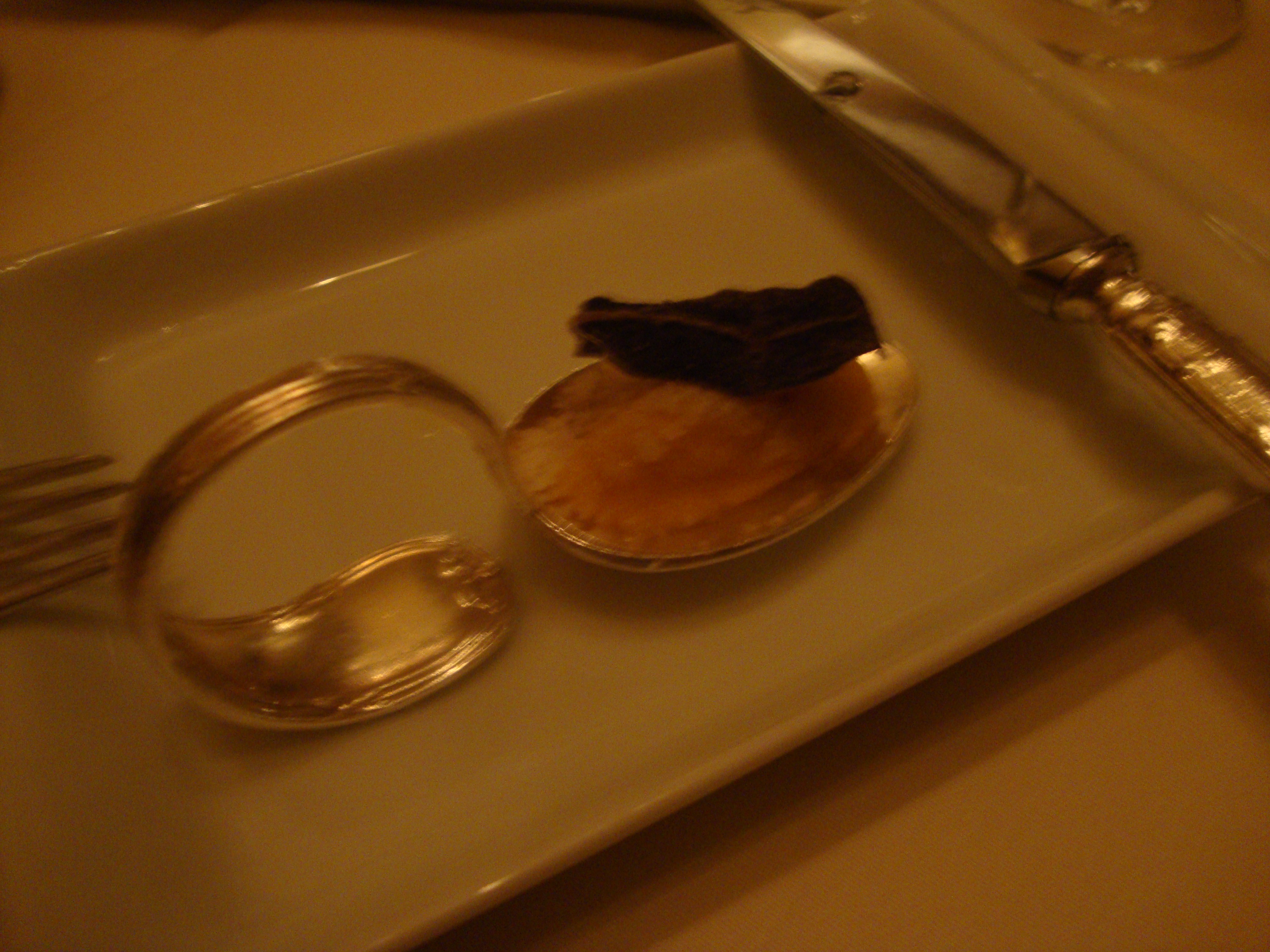 cm felt the foie gras was delicious but could only eat his own and not mine also, as it was too similar to butter to eat much of. The golden sweet onion crepe was incredible, with onions that had been cooked for hours and so much intense flavor. Other amuse bouches included a bluefin tuna tartare and a veal carpaccio, both decadently rich.