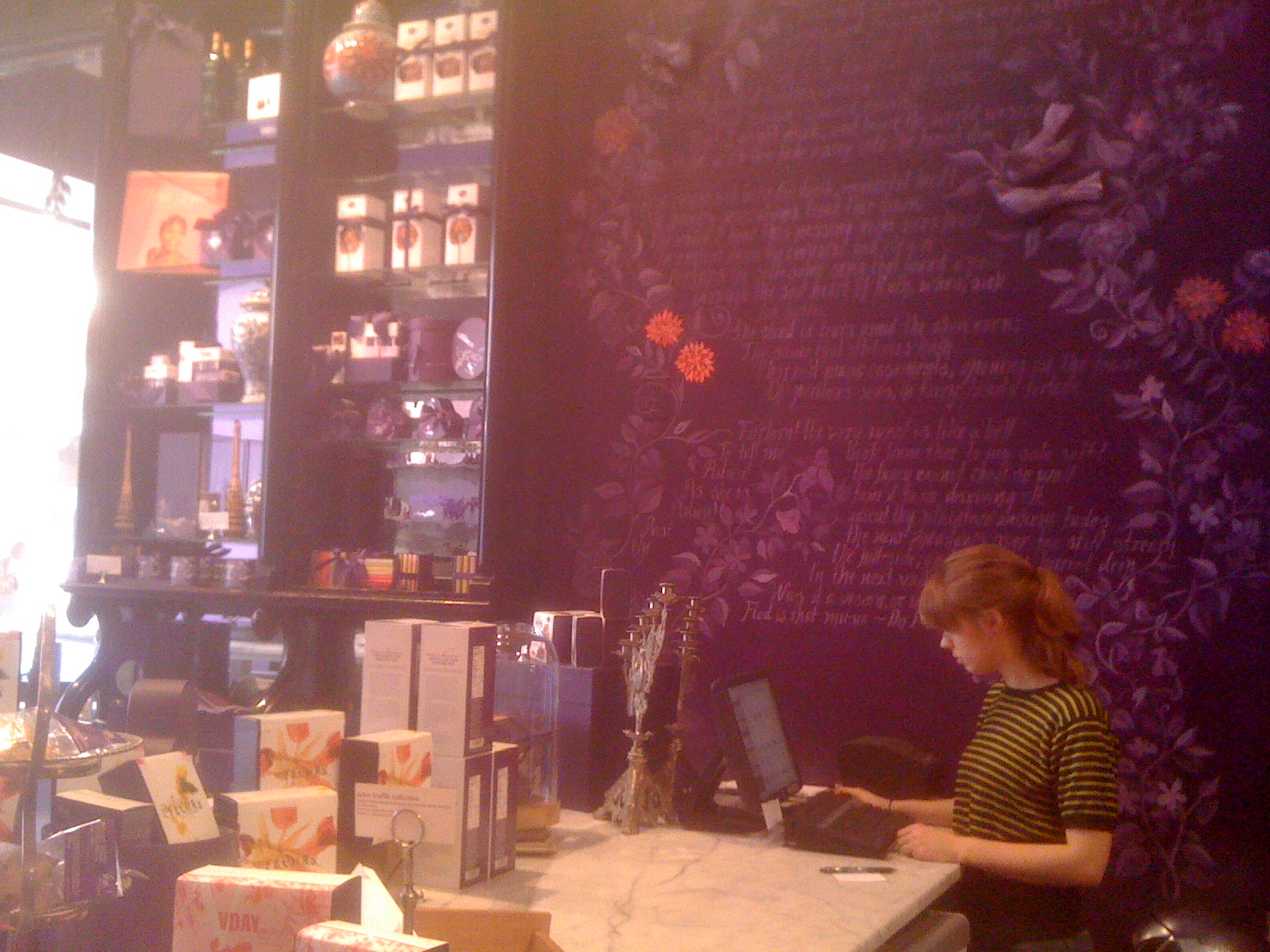 First up: Vosges Chocolate in NYC. g and I were in NYC this past weekend for a lovely wedding (more on that later). We decided to run down to Soho and do a bit of shopping. As the dedicated bag mule, I was perhaps a little whiny, as it was very warm outside and I am fairly heat intolerant (I’m actually sweat intolerant moreso than heat intolerant). g decided to placate the 6-year-old in me with a trip to Vosges chocolate. Now I know that in the world of real chocolate, perhaps Vosges isn’t the best, maybe some will view their chocolate as nothing but over-priced Hershey’s with upscale marketing – but who cares? It’s chocolate. And I like it. So back off! Oh … yes … back to the story at hand … This is what I saw outside.